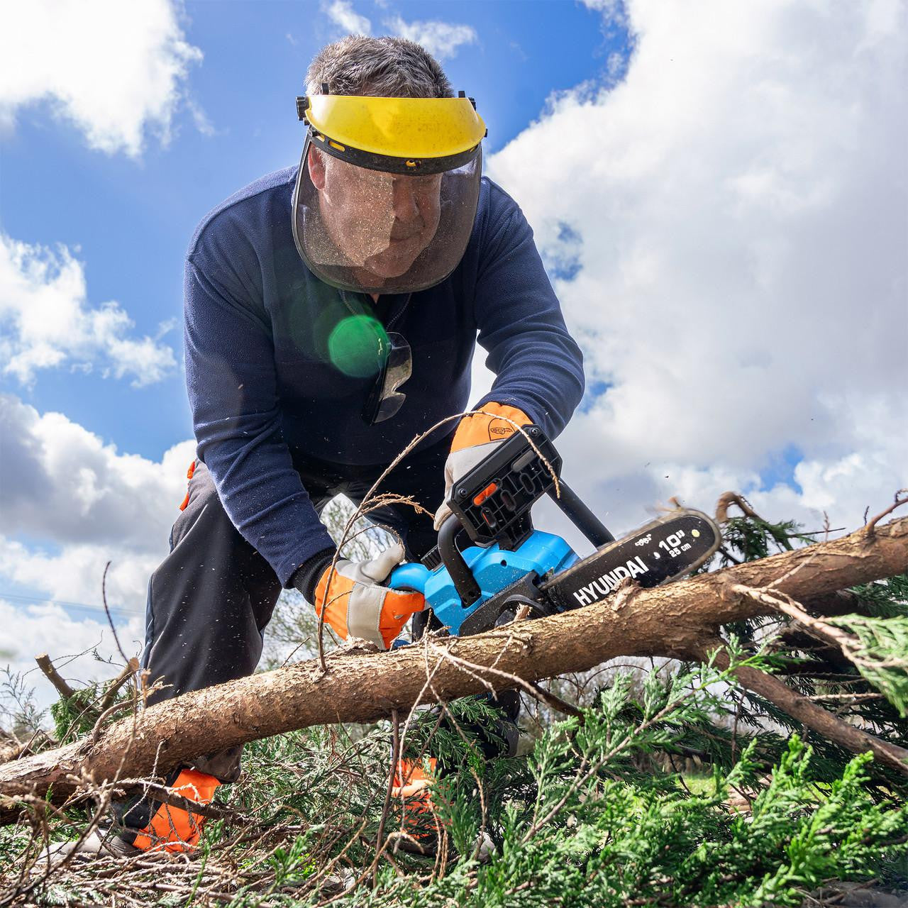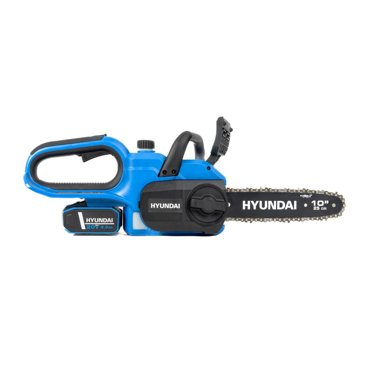 Hyundai HY20CCS10 10" (25cm) 20V Cordless Chainsaw with 4Ah lithium-ion battery and 2Ah Charger – Lightweight, Powerful, and Effortless Cutting