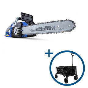 Hyundai 14" 35cm Electric Chainsaw 1600W 230V & Garden Trolley on Wheels, 100kg Load with Brakes | HYC1600E+GTW260 is backordered and will ship as soon as it is back in stock.