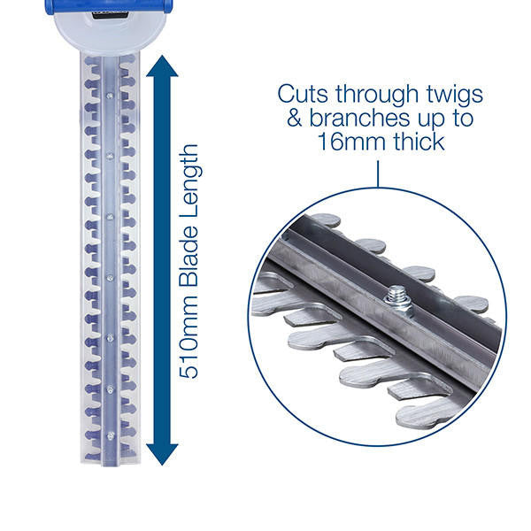 The 51cm diamond-ground sharpened punched steel double-action blade of this garden hedger will slice through all types of hedging up to 16mm in diameter, providing a clean cut every time.
