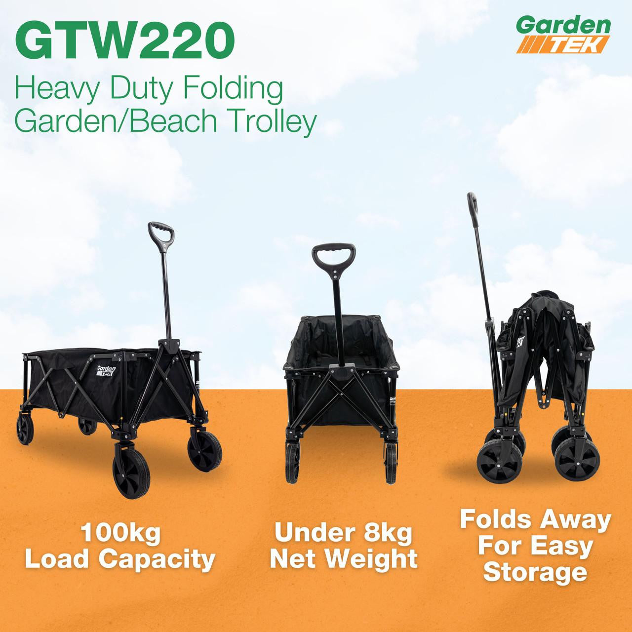 GardenTek Folding Trolley on Wheels, Garden Trolley 100kg Load 135L Capacity | GTW220 is backordered and will ship as soon as it is back in stock.
